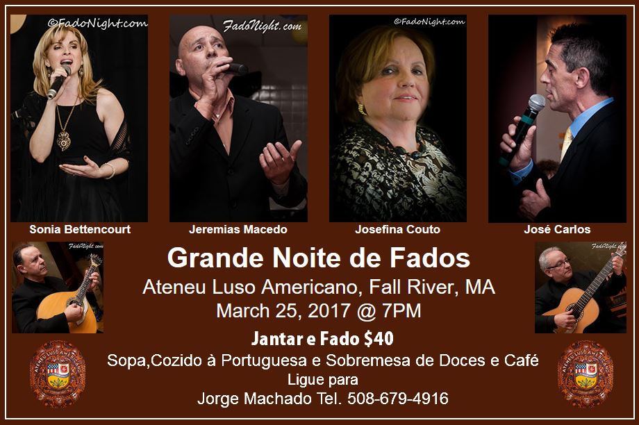 Saturday, March 25, 2017 @ 7:00 pmAteneu Luso Americano120 Covel Street, Fall River, MACall (508) 679-4916